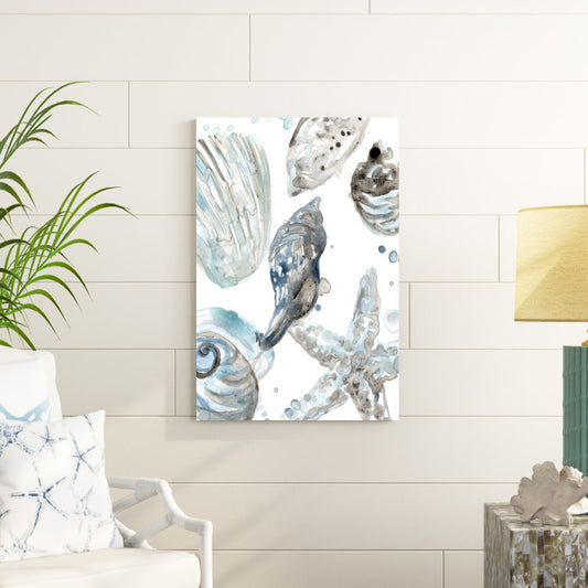 Coastal Charm: Serene Oil Painting of Sea Shells and Starfish