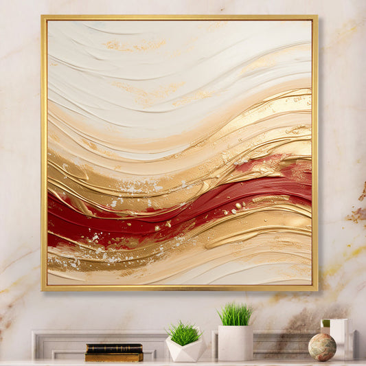 Elegant Gold and Red Abstract Wave Oil Painting for Modern Home Décor