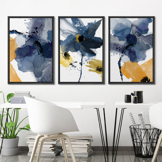 Navy Blue Floral Abstract Canvas Art Set - Elegant Watercolor Wall Decor for Home