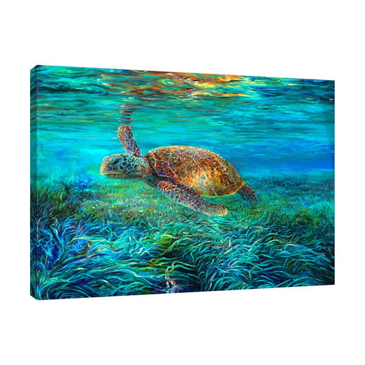 Vibrant Sea Turtle Swimming in Blue Ocean - Stunning Oil Painting