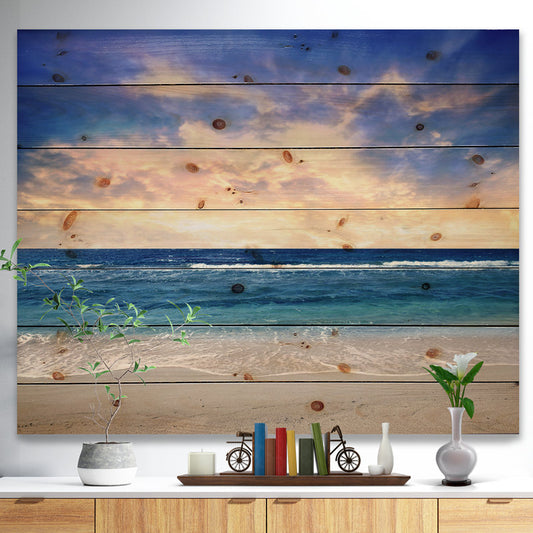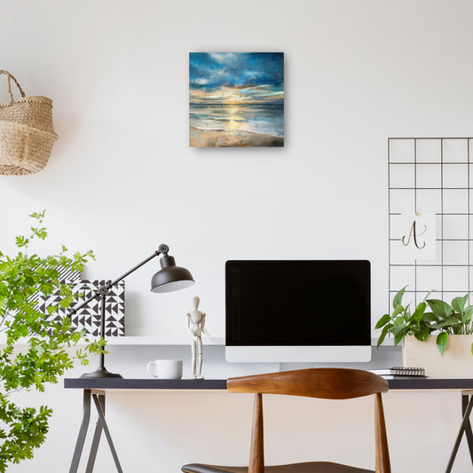 Tranquil Blue Ocean Sunset Landscape Oil Painting for Home Decor