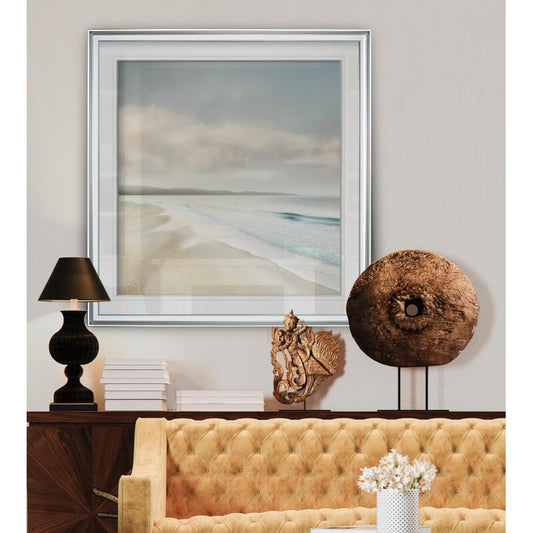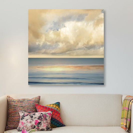 Serene Beachscape: Tranquil Ocean and Cloudy Sky Oil Painting