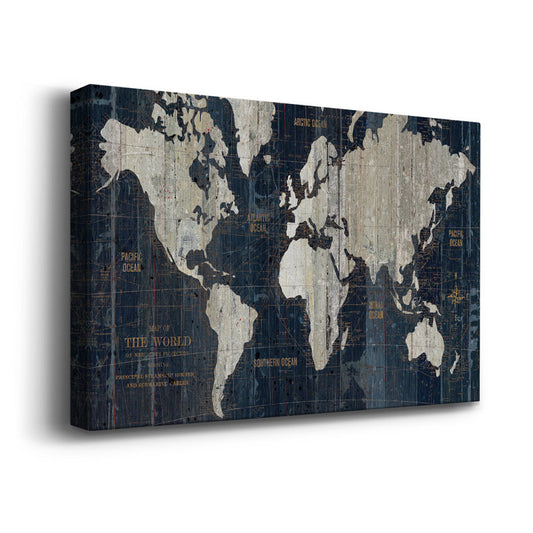 Vintage World Map Oil Painting for Home Decor - Coastal and Rustic Wall Art