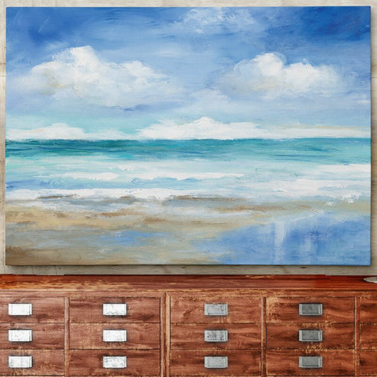 Tranquil Coastal Serenity - Beautiful Oil Painting of Ocean and Sky