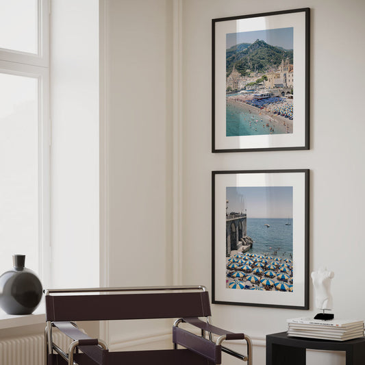 Vibrant Fornillo Beach Oil Painting – Coastal Serenity and Colorful Sun Loungers