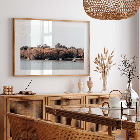 Tranquil Yarralumla Landscape: Serene Water and Sailboats in Autumn Colors