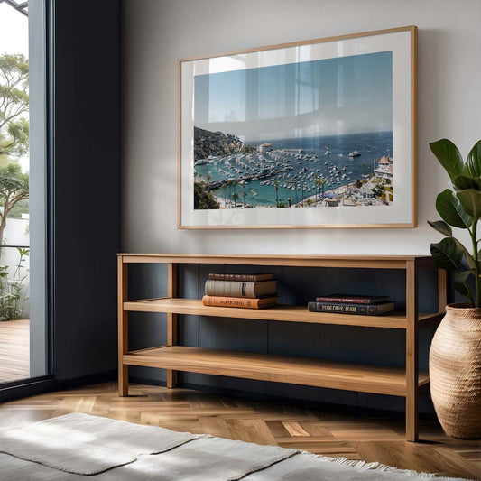 Tranquil Coastal Harbor Oil Painting of Avalon with Serenity and Blue Waters