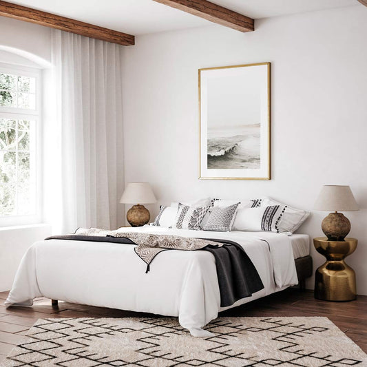 Serene Ocean Waves with Surfers in Black and White Art Print