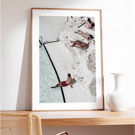 Serene Poolside Retreat with Sunbathers and Crystal Clear Waters