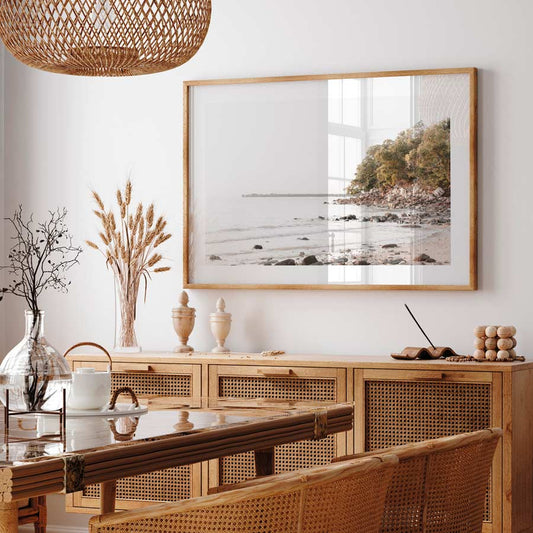 Serene Island Mist Canvas Art - Tranquil Ocean Landscape Painting for Home Decor