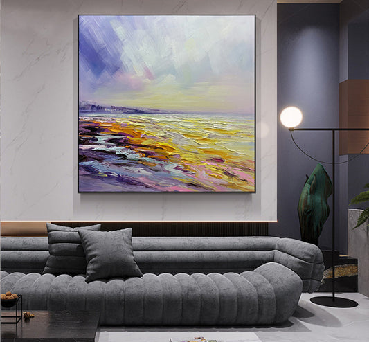 Serene Coastal Oil Painting - Modern Beach Landscape Artwork for Home Decor