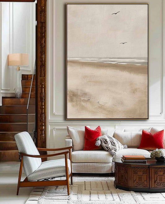 Serene Coastal Landscape Oil Painting - Elegant Beach Horizon Artwork for Home Decor