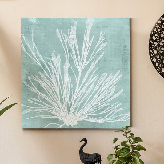 Elegant Aqua Seaweed Oil Painting for Coastal Home Décor