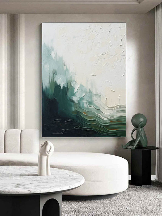 Serene Abstract Ocean Waves Oil Painting for Tranquil Home Decor