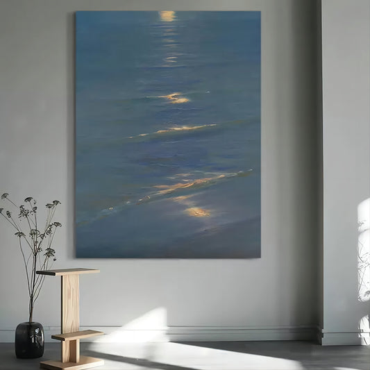 Serene Blue Ocean Reflection Oil Painting for Tranquil Home Decor