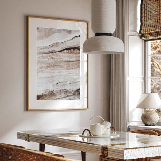 Serene Abstract Landscape Oil Painting of Soft Earth Tones and Gentle Waves