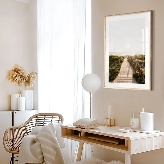 Serene Beach Pathway at Sunrise - Oil Painting for Tranquil Home Decor