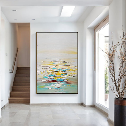 Serene Abstract Ocean Landscape in Warm Yellow and Cool Blue Tones