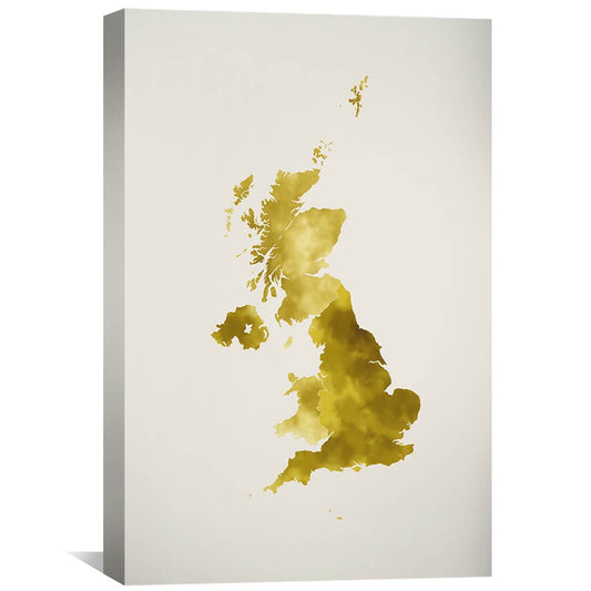 Elegant Gold Map of the United Kingdom Watercolor Oil Painting for Home Decor