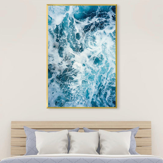Dynamic Ocean Waves Oil Painting - Vibrant Blue Abstract Wall Art