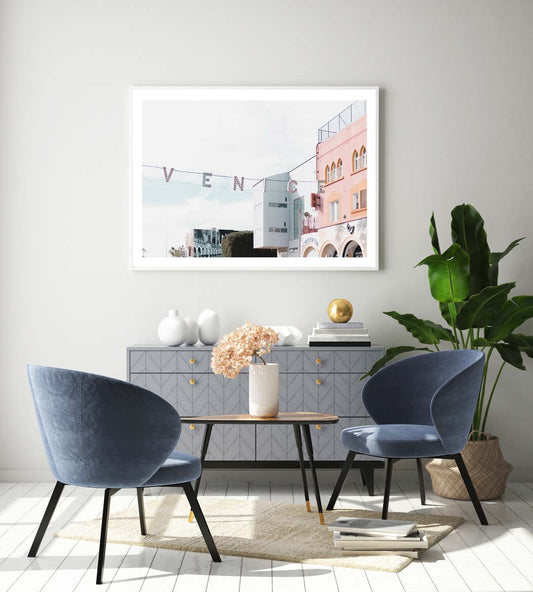 Charming Venice Beach Streetscape: Vibrant Oceanfront Oil Painting