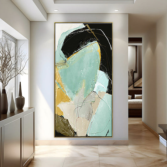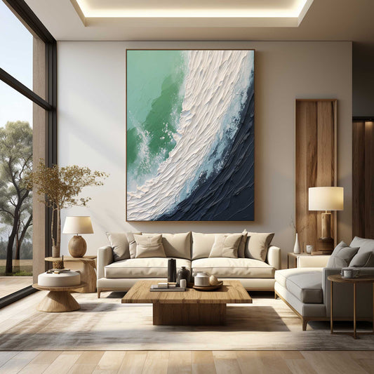 Abstract Ocean Wave Oil Painting with Green and Texture Details for Elegant Home Decor