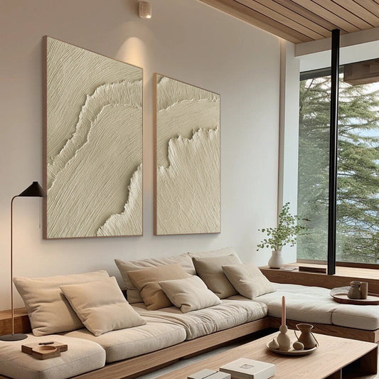 Abstract Ocean Wave Oil Painting with Textured Plaster Finish for Modern Home Decor