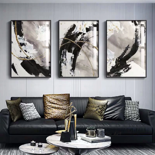Abstract Black and White Waves – Modern Oil Painting for Elegant Decor