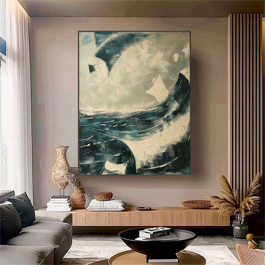 Abstract Ocean Waves Oil Painting with Textured Brushwork for Modern Decor