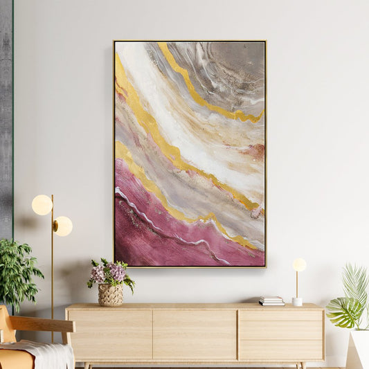 Abstract Pink and Gold Ocean Inspired Oil Painting for Modern Home Decor