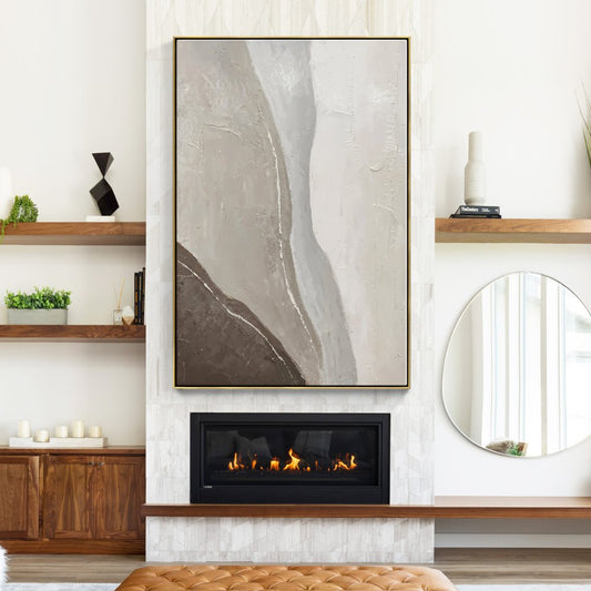 Abstract Desert Waves Oil Painting in Earth Tones for Modern Home Decor