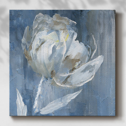 Elegant White Flower on Serene Blue Background - Handcrafted Oil Painting for Home Decor