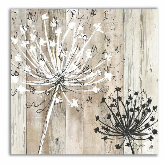 Rustic Floral Elegance: Charming Oil Painting of Dandelions on Weathered Wood