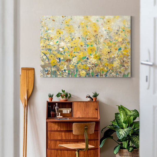 Vibrant Yellow Floral Landscape Oil Painting for Bright, Cheerful Decor
