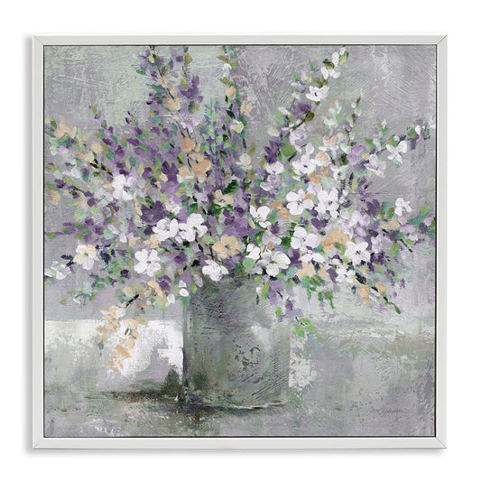 Soft Purple Aster Flower Bouquet Oil Painting Framed Floral Art for Home Decor
