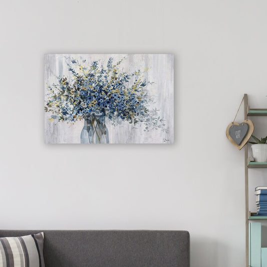 Beautiful Blue Floral Arrangement in Vase - Vibrant Oil Painting for Elegant Decor