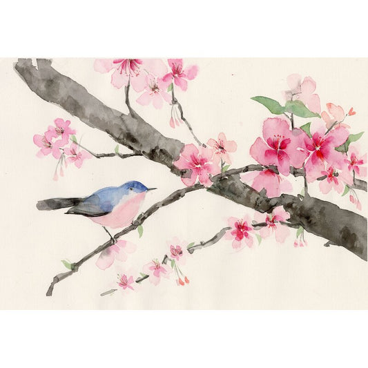 Blossoming Cherry Tree with Bird - Elegant Floral Oil Painting