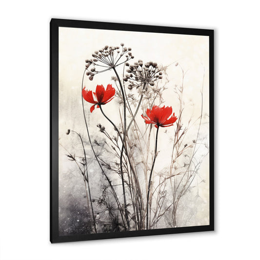 Vibrant Red Flowers in a Serene Gray Herb Garden Oil Painting