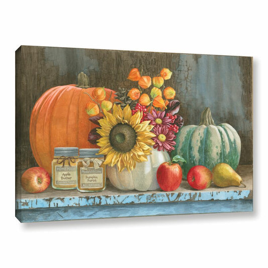 Rustic Harvest Charm: Sunflowers and Autumn Produce Oil Painting Print