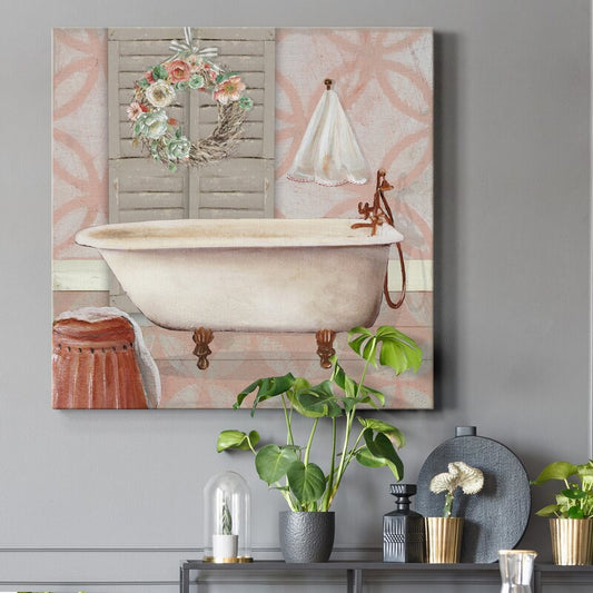 Charming Vintage Bathtub with Floral Decor - Inviting Oil Painting for Home