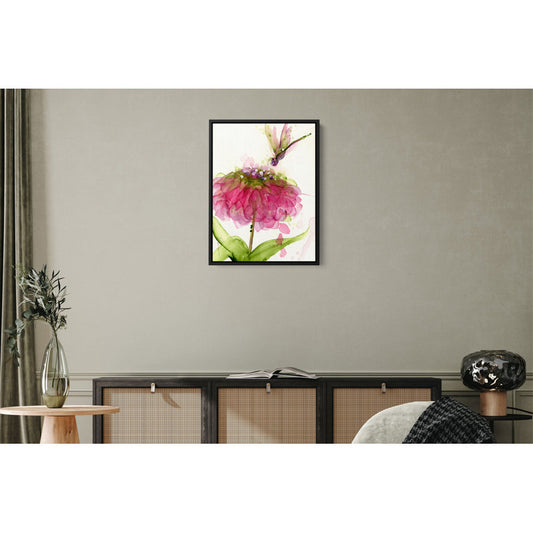 Beautiful Dragonfly Over Vibrant Zinnia Flower Oil Painting