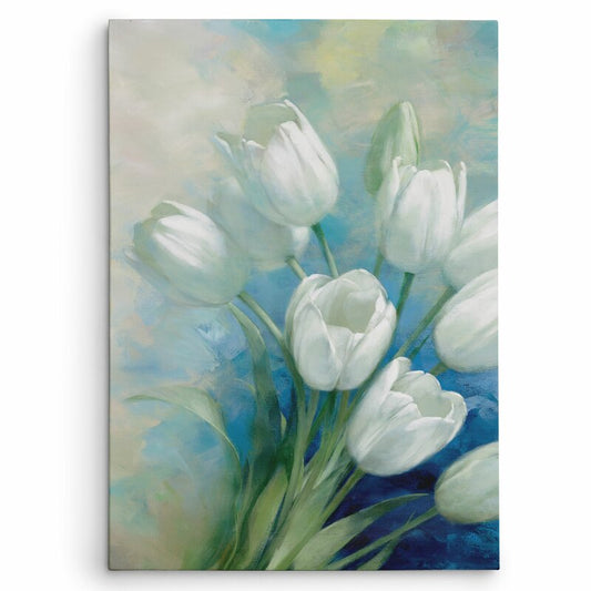 Serene White Tulips in Bloom - Elegant Floral Oil Painting Perfect for Home Decor