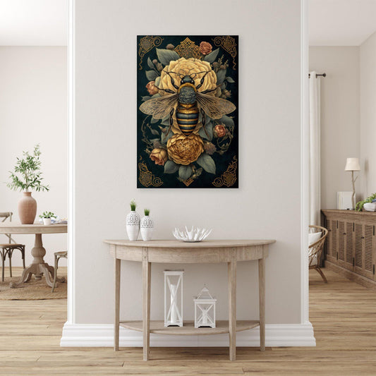 Floral Symphony: Elegant Roses and Majestic Bee Oil Painting