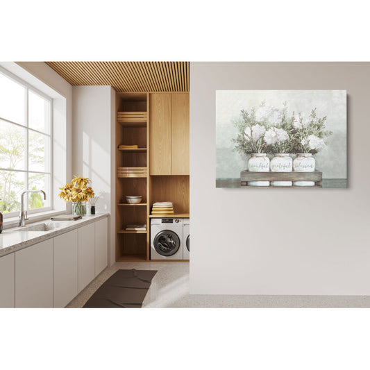 Modern Farmhouse Framed Wall Art with White Flower Jars and Hydrangeas