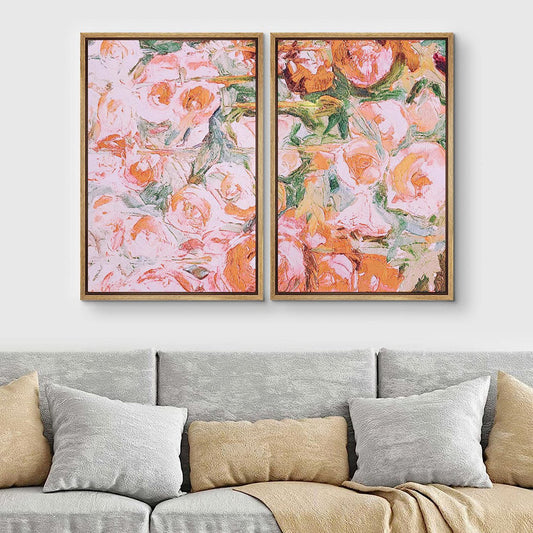 Vibrant Floral Oil Painting Duo with Colorful Brushstrokes and Pastel Hues