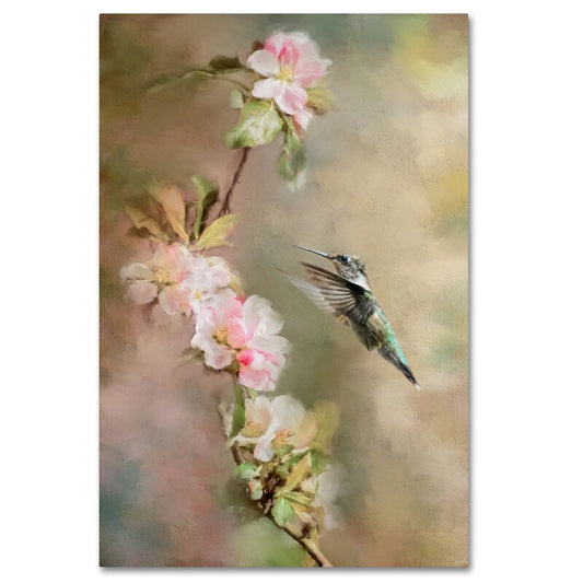 Enchanting Hummingbird in Blooming Floral Paradise Oil Painting