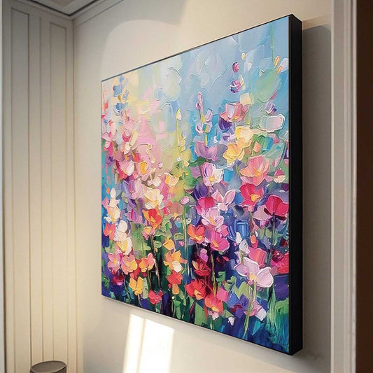 Vibrant Floral Oil Painting on Canvas - Colorful Flower Garden Art