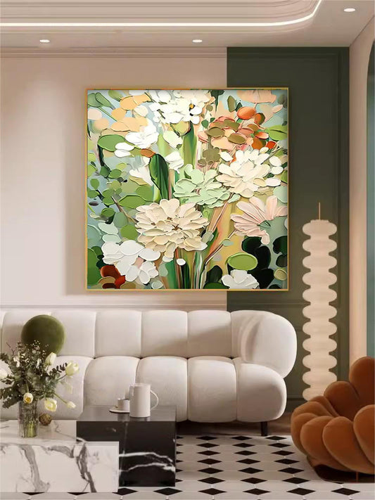 Vibrant Floral Oil Painting for Home Decor | Colorful Blooming Canvas Artwork