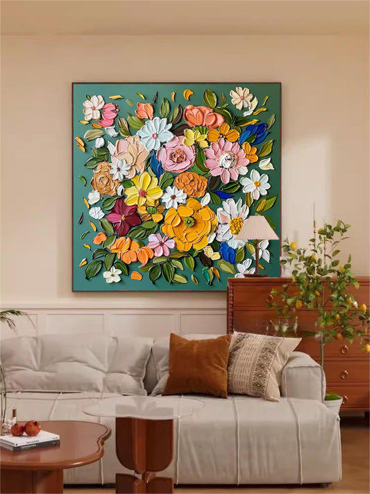 Vibrant Floral Oil Painting on Canvas - Colorful Nature-Inspired Wall Art Decor