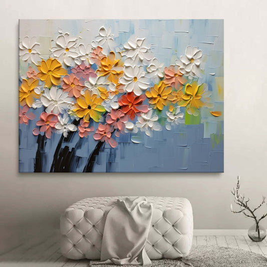 Vibrant Floral Harmony: Colorful Oil Painting for Artistic Home Decor